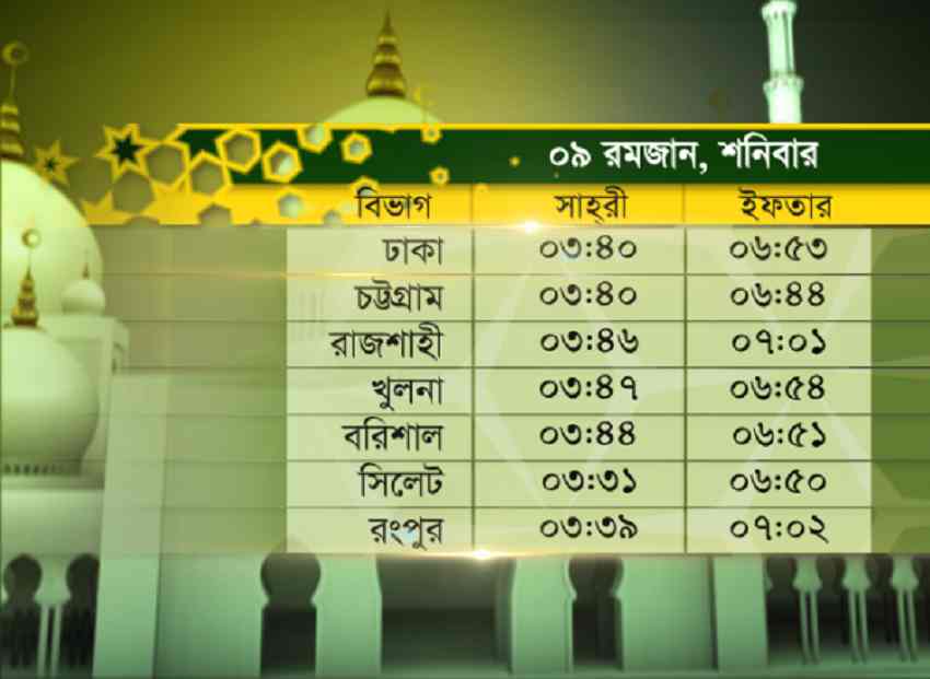 আজকের সেহরী ও ইফতারের সময়সূচি