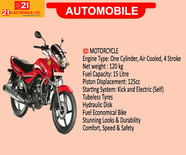 আপনার কাঙ্খিত মোটর সাইকেল পেতে আজই যোগাযোগ করুন ২১ ইলেক্ট্রনিক্স এর শো-রুমে।