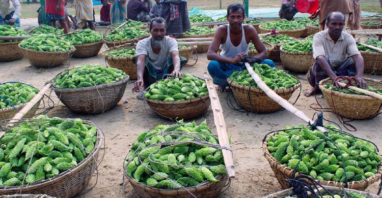 আর ক্ষেত থেকে করলা তোলার পর সারি সারি ডালি নিয়ে কৃষকরা হাজির হয় স্থানীয় খরসতি ঈদগাহ মাঠে। আর এখানেই বসে বিশাল হাট। এখন এ চিত্র যেন প্রতিদিনের এক চিরচেনা রুপ।