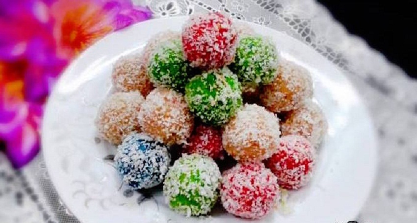 কোরানো নারিকেল থেকে আগেই ১ কাপ নারিকেল তুলে রাখুন। ননস্টিক ফ্রাই প্যানে বাটার দিয়ে গলিয়ে নিন ।এরপর নারিকেল ঢেলে দিন। মাঝারি আচে ৫-৬ মিনিট ভাজার পরে কন্ডেন্সড মিল্ক অর্ধেক ঢেলে দিন । নারিকেল শুকনা শুকনা হয়ে এলে আবার অল্প করে কন্ডেন্সড মিল্ক ঢেলে দিন। ৭-৮ মিনিট পরে আবারো বাকি কন্ডেন্সড মিল্ক ঢেলে দিন। মাঝারি আচে নাড়তে থাকুন । শেষের দিকে অল্প আচে নাড়বেন। অল্প একটু হাতে নিয়ে বল তৈরি করে দেখুন যদি দেখেন বল তৈরি করা যাচ্ছে তাহলে নামিয়ে নিন । নারিকেলের কাঁচা ভাব চলে গেলে এবং আঠালো হয়ে এলে বুঝতে হবে হয়ে গেছে। নামানোর আগ দিয়ে ভ্যানিলা এসেন্স দিয়ে নামিয়ে নিন ।ঠান্ডা করার জন্য ফ্যানের নিচে কিছুক্ষন রাখুন। হালকা গরম থাকতে থাকতেই বল তৈরি করুন । একটি করে বল তৈরি করে শুকনা নারিকেলের মধ্যে গড়িয়ে নিন ।অল্প অল্প করে কিছু নারিকেল আলাদা পাত্রে নিয়ে কালার মিক্স করে বল তৈরি করুন । চাইলে কালার ছাড়াই তৈরি করতে পারেন । সব গুলোতে একই ভাবে কোটিং দেয়া হয়ে গেলে ফ্রিজে রেখে দিন ৪-৫ ঘন্টা সেট হওয়ার জন্য।