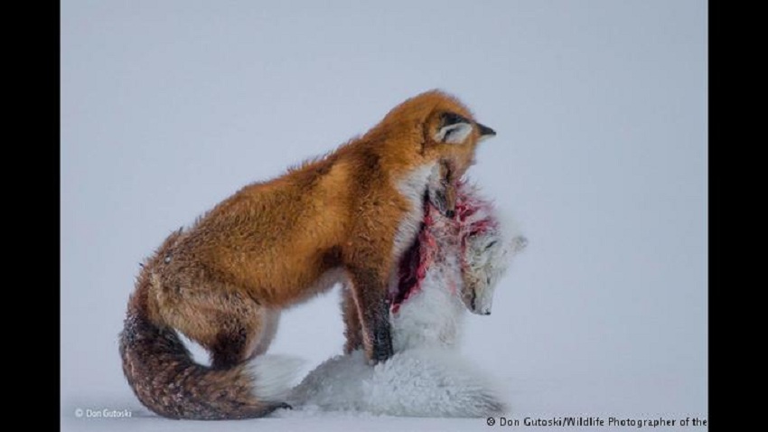 জলবায়ুর পরিবর্তনের ফলে উত্তর অ্যামেরিকার রেড ফক্স বা বাদামি শেয়ালেরা ক্রমেই আরো বেশি করে সুমেরু অঞ্চলের স্নো ফক্স বা সাদা শেয়ালদের রাজত্বে ঢুকে পড়েছে৷ শুধু ঢুকে পড়েছে নয়, মাঝেমধ্যে স্বজাতিকে শিকারও করে ফেলছে৷ ক্যানাডার নাগরিক ডন গুটোস্কি উত্তর ক্যানাডায় ৪০ হেক্টার জমির মালিক৷ মাইনাস তিরিশ ডিগ্রি ঠান্ডায় তিন ঘণ্টা বসে থেকে তিনি এই ছবিটি তোলেন৷