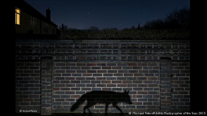 দেওয়ালে ও কার ছবি? শেয়ালের৷ কিন্তু এ শহুরে শেয়াল, আসে-যায় অতি সাবধানে, দেখা পাওয়া যায় কি যায় না৷ আর্বান বা শহুরে বিভাগে প্রথম পুরস্কার পেয়েছে ছবিটি৷ তুলেছেন যুক্তরাজ্যের রিচার্ড পিটার্স৷ তাঁর এক বন্ধু ঠিক সময় লাইট জ্বালিয়ে দেন, কাজেই শেয়াল পণ্ডিত ধরা না পড়েও ধরা পড়েছেন৷ সে ছবি তোলা রইল ব্রিটেনের ন্যাচারাল হিস্টরি মিউজিয়ামে৷