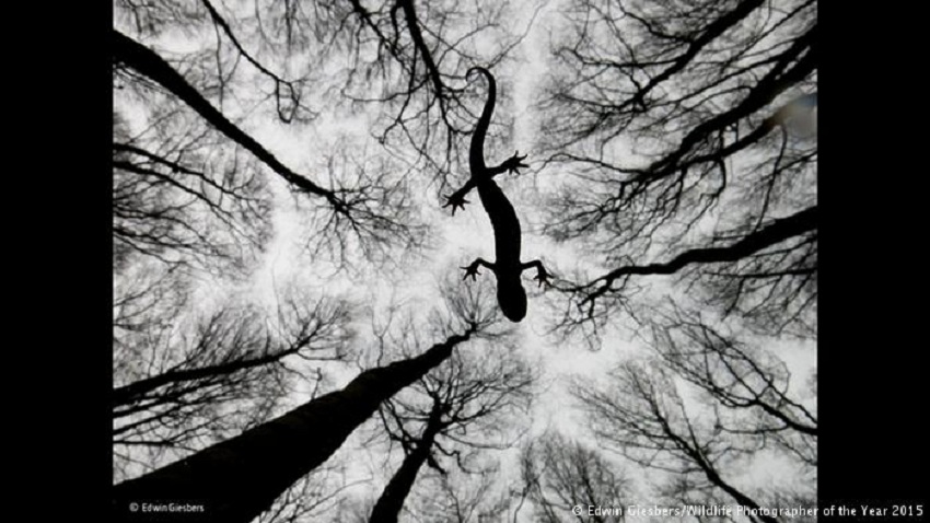 এডউইন গিসবার্স হল্যান্ডের লোক৷ নদীনালার হিমশীতল জলে রাবারের স্যুট পরে অসীম ধৈর্য্যের সঙ্গে বসে থেকে তিনি এই গোসাপের ছবিটি তোলেন – এবং উভচর প্রাণী তথা সরীসৃপ বিভাগের সর্বোচ্চ পুরস্কারটি পকেটস্থ করেন৷