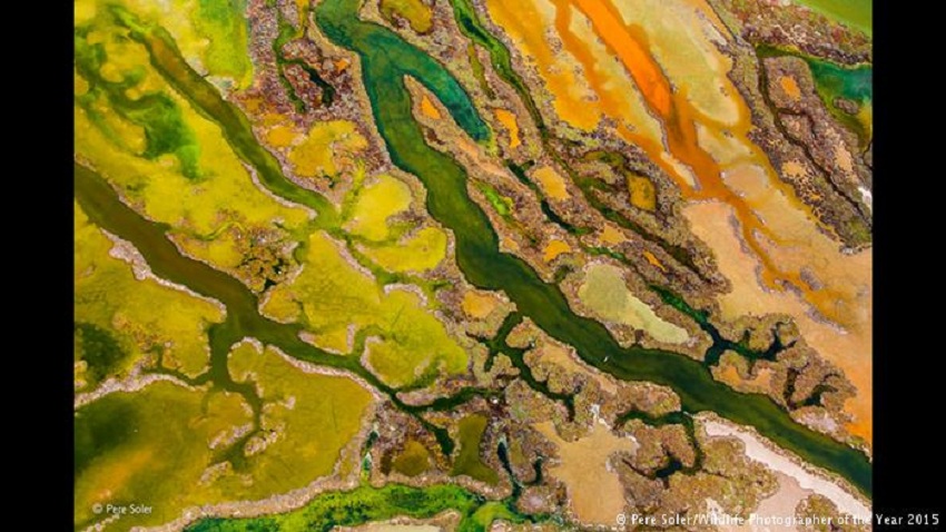 অ্যালগে বলতে বোঝায় জলজ শ্যাওলা৷ স্পেনের বাহিয়া দে কাদিজ ন্যাচারাল পার্কে ছবিটি তোলেন পের সোলার৷ তিনি নিজেও স্প্যানিশ৷ বসন্তে জলাভূমির অ্যালগে সবুজ সমুদ্রশৈবালের গায়ে যেন ফুটে থাকে! আকাশ থেকে তোলা ছবি বিভাগে প্রথম পুরস্কার পেয়েছে ছবিটি৷