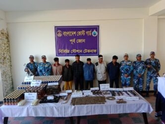 টেকনাফে কোস্টগার্ডের বিশেষ অভিযানে ৯ ঘন্টার রুদ্ধশ্বাস অভিযানে ১৪টি আগ্নেয়াস্ত্রসহ ৪৮৬ রাউন্ড গোলাবারুদ ও মাদকদ্রব্যসহ ৬ জন সশস্ত্র ডাকাত আটক হয়েছে।