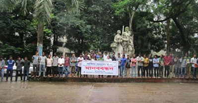 ঢাবিতে সাংবাদিক হামলার প্রতিবাদে মানববন্ধন