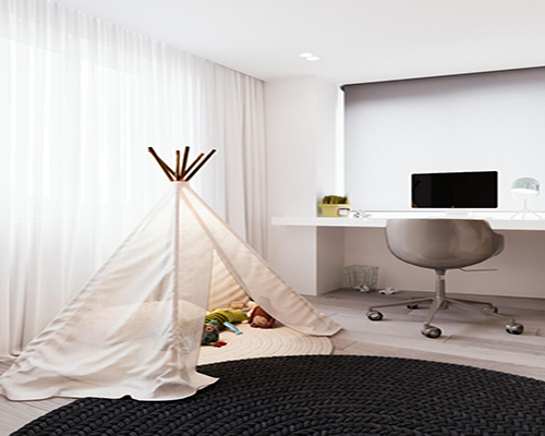‘হোম ইস হয়ার দ্য হার্ট ইজ’- আধুনিক স্থাপত্যকলায় এটাকেই পারিবারিক জীবনের মূলমন্ত্র হিসেবে মনে করা হয়। পর্দা, দেয়াল আর আসবাবে কোমল রংকে প্রাধান্য দেয়া হয়েছে। বইয়ের তাক গুলকে রাঙ্গানো হয়েছে শুধু লাল রঙে। কফির টেবিলটা আয়না সম্বলিত। ঘুমঘর, খেলাঘর আর পড়াঘর- ছোট্ট মেয়েটার ঘরটা এই তিন ভাগে ভাগ করা হয়েছে।