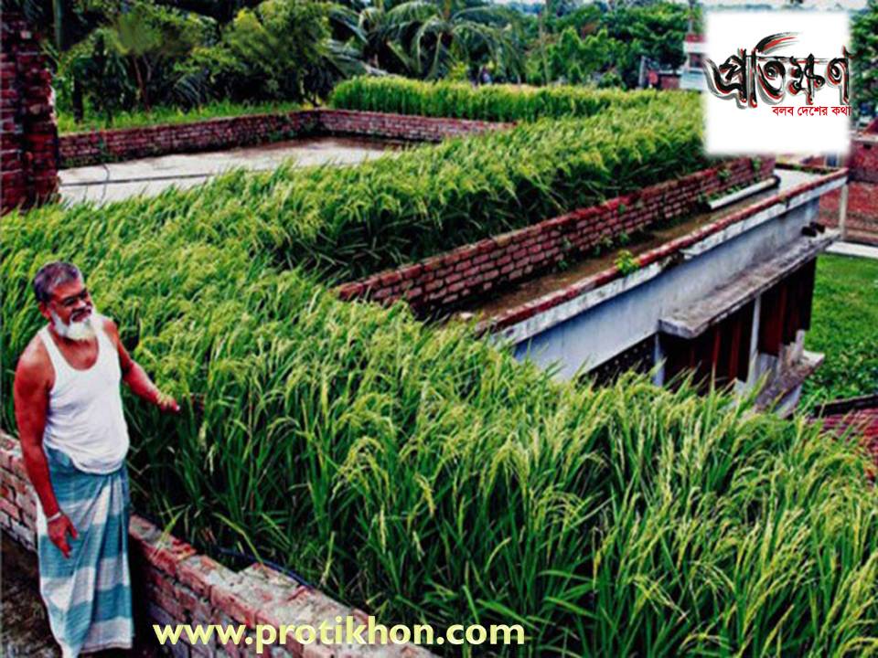 ঐ বাড়ির ছাদের ধানক্ষেত ঘুরে দেখা গেছে, ছাদের চারপাশে দুই হাত ফাঁকা রেখে ইটের গাঁথুনি দিয়ে রেলিং তৈরি করা হয়েছে। আর রেলিংয়ের মাঝে দেয়া হয়েছে মাটি। যদিও মাটি দেয়ার আগে ছাদের উপর দেয়া হয়েছে পলিথিন এবং তার উপর দুই ইঞ্চি পুরু করে ইট, বালু ও সিমেন্ট দিয়ে ঢালাই। যেন মাটির কারণে বাড়ির ছাদের কোনো ক্ষতি না হয়। এরপর রোপণ করা হয়েছে ধানের চারা। আর সার হিসাবে ব্যবহার করা হয়েছে বাসা-বাড়ির সবজির বর্জ্য।