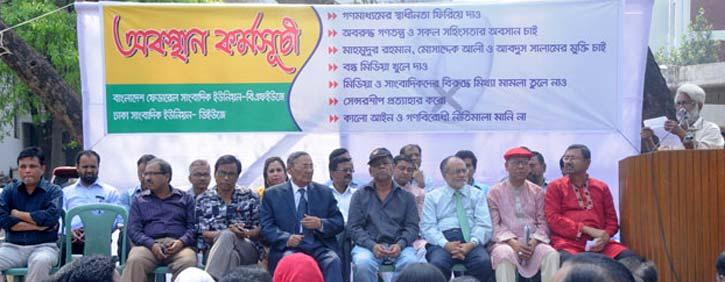 গণমাধ্যমের স্বাধীনতাসহ বিভিন্ন দাবিতে অবস্থান কর্মসূচি পালন করছে বাংলাদেশ ফেডারেল সাংবাদিক ইউনিয়ন (বিএফইউজে) ও ঢাকা সাংবাদিক ইউনিয়ন (ডিইউজে)।