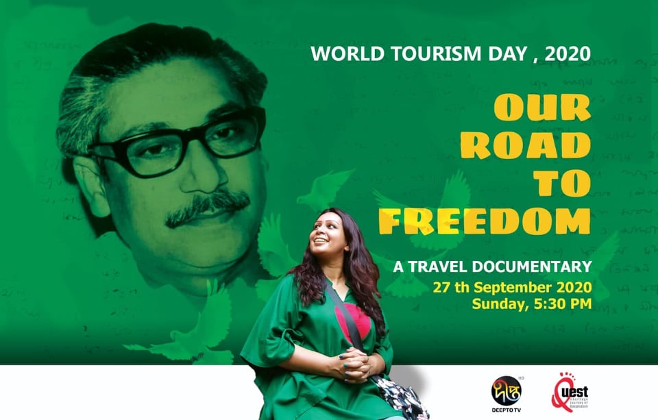 ‘কোয়েস্ট’ এর প্রযোজনায় নির্মিত ট্রাভেল ডকুমেন্টরি “ আওয়ার রোড টু ফ্রিডম” দীপ্ত টেলিভিশনে প্রচার করা হবে বিশ্বপর্যটন দিবস উপলক্ষে আগামী ২৭ সেপ্টেম্বর বিকাল সাড়ে পাঁচটায় ।