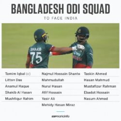 সাকিব আল হাসান ভারতের বিপক্ষে তাদের আসন্ন তিন ম্যাচের সিরিজের জন্য বাংলাদেশের ওয়ানডে দলে ফিরে এসেছেন। ঢাকায় মিরপুরের উইকেটে সিরিজের প্রথম ওডিআই মাঠে গড়াবে ৪ ডিসেম্বর। এই অলরাউন্ডার জুলাই-আগস্টে জিম্বাবুয়ে সফর থেকে সরে গিয়েছিলেন ছুটি নিয়ে।