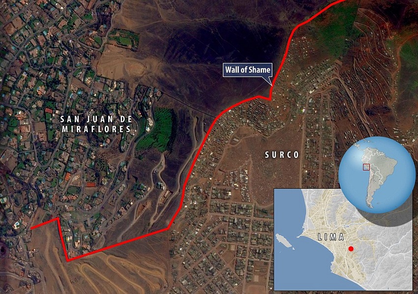 তারাই তৈরি করলেন, ১০ ফুট উঁচু ইট-সিমেন্টের দেয়াল। এর ওপর আবার রয়েছে কাঁটাতারের বেড়াজাল। এক পাশে বসবাস গরীব মানুষদের, অন্যপাশে ধনীদের। গরীব লোকজন যাতে ধনীদের এলাকায় যেতে না পারে সেজন্য এই দেয়াল। ‘যেতে না পারে’- কথাটির মানে বুঝতে পেরেছেন? বিত্তশালীদের কোনোকিছু যাতে গরীবরা চুরি করতে না পারে, সেজন্যই নির্মাণ করা হয় এই দেয়াল! এই দেয়ালকে পেরুর ‘বার্লিন দেয়াল’ বলা হয়। কিন্তু এখন এটিকে বলা হয় ‘লজ্জার দেয়াল’।