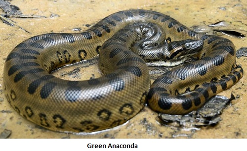 পৃথিবীর সবচেয়ে বড় সাপ এ্যানাকোন্ডা। এ্যানাকোন্ডা কয়েক ধরনের রয়েছে। এদের মধ্যে সবচেয়ে বেশি পরিচিত হলো গ্রিন এ্যানাকোন্ডা। ভারি সাপ হিসেবেও গ্রিন এ্যানাকোন্ডাই বেশি পরিচিত। প্রায় ১৫০ থেকে ২২৭ কেজি ওজনের গ্রিন এ্যানাকোন্ডা লম্বায় ২৭ থেকে ৩০ ফুট পর্যন্ত হয়ে থাকে।