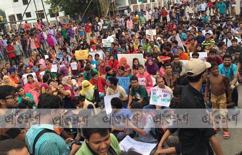 টিউশন ফি’র ওপর মূল্য সংযোজন কর (ভ্যাট) প্রত্যাহারের দাবিতে রাজপথে নেমেছেন আন্দোলনরত শিক্ষার্থীরা। রোববার সকাল সোয়া ১০টার পর রাজধানীর বনানী, বারিধারা, ধানমন্ডি, উত্তরা ও রামপুরা ব্রিজ থেকে মেরুল বাড্ডা পর্যন্ত সড়ক অবরোধ করে বিক্ষোভ করছেন তারা। ফলে কার্যত অচল হয়ে পড়েছে রাজধানী ঢাকা।