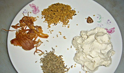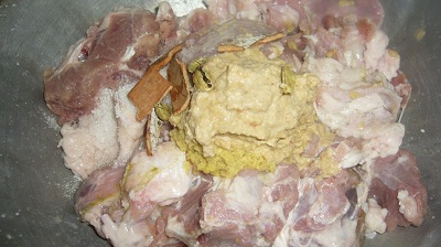 একটি প্যানে ২ টেবিল চামচ সরিষার তেল নিন। ১ টি পেঁয়াজ কুঁচি বাদামী করে ভেজে তুলে ঠাণ্ডা করে বেটে নিন। তারপর শুকনো মরিচ বাটার সাথে মিশিয়ে ফেলুন। পুরো মিশ্রণটি টকদইয়ের সাথে মিশিয়ে ভালো করে ফেটিয়ে আলাদা করে রাখুন।