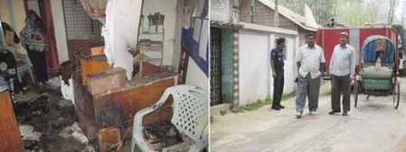এর কিছুক্ষণ পরে সন্ত্রাসীরা তার বাড়ি-ঘর ভাঙচুর ও আগুন দেয়। এতে বাড়ির দুটি ঘর, ঘরের আসবারপত্র ও একটি মোটরসাইকেল পুড়ে গেছে। খবর পেয়ে পুলিশ ও ফায়ার সার্ভিসের সদস্যরা ঘটনাস্থলে পৌঁছে আগুন নিয়ন্ত্রণে আনে।