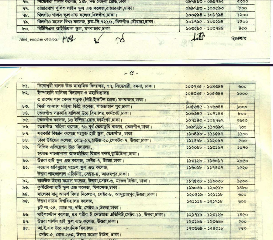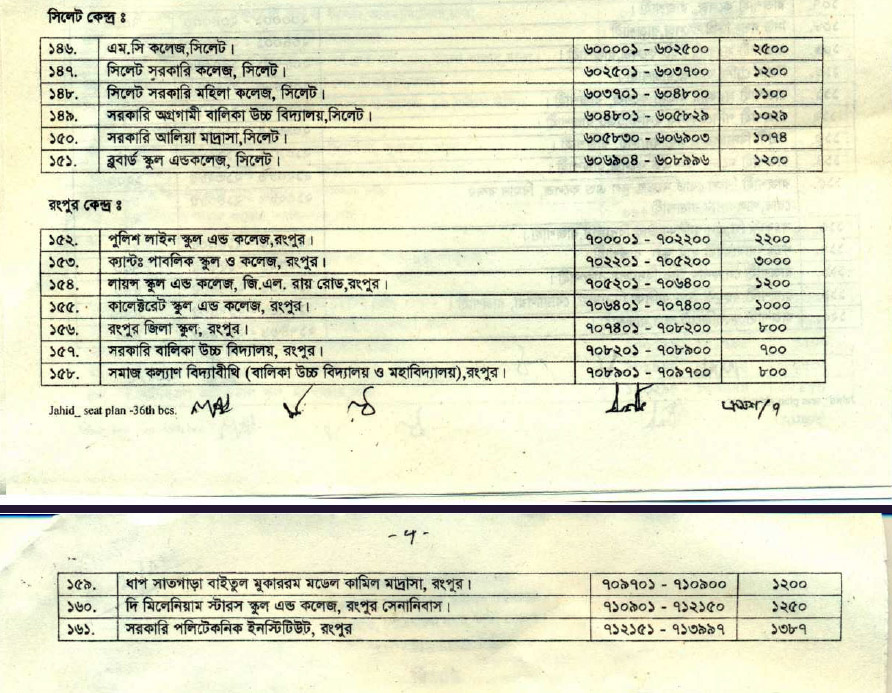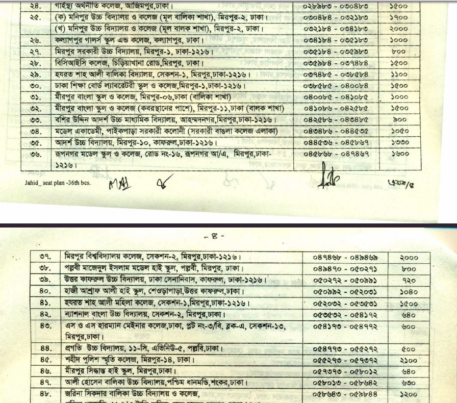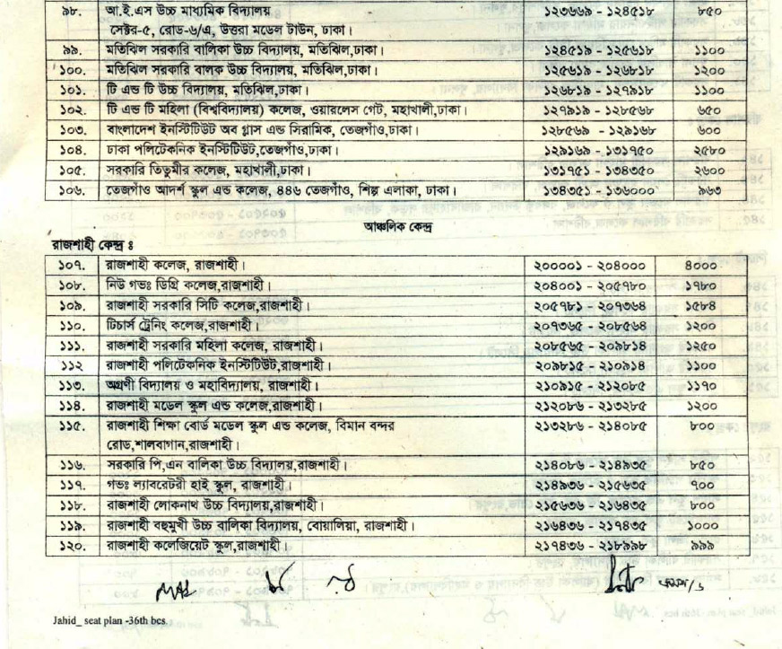 ৩৬তম বিসিএস প্রিলিমিনারি আসনবিন্যাস: