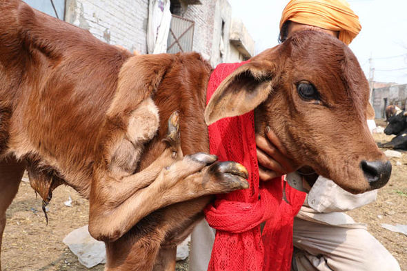 ভারতের পাঞ্জাব রাজ্যের লুধিয়ানা জেলার অধিবাসী অভিনব আব্রোল। সম্প্রতি তার গরুর খামারে আশ্চর্য এক বাছুর জন্ম নেয়। বাছুরটির ঘাড় থেকে অদ্ভূতভাবে তিনটি পা বের হয়ে আছে।