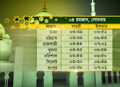 আজকের সেহরী ও ইফতারের সময়সূচি