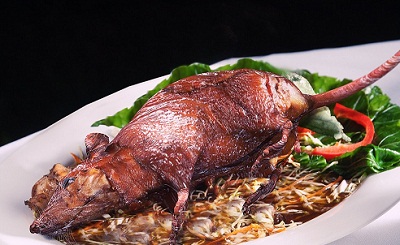 ভিয়েতনামের রাস্তাঘাটে এরকমভাবে ফ্রাই করে রাখা ইঁদুরের রোষ্ট পাবেন। যা তাদের কাছে বেশ