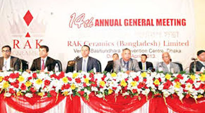 আর এ কে সিরামিক্স (বাংলাদেশ) লিমিটেডের ১৬তম বার্ষিক সাধারণ সভা (এজিএম) ২০ এপ্রিল রাজধানীর ইন্টারন্যাশনাল কনভেনশন সিটি, বসুন্ধরা, জোয়ারসাহারা, খিলক্ষেতে অনুষ্ঠিত হয়।