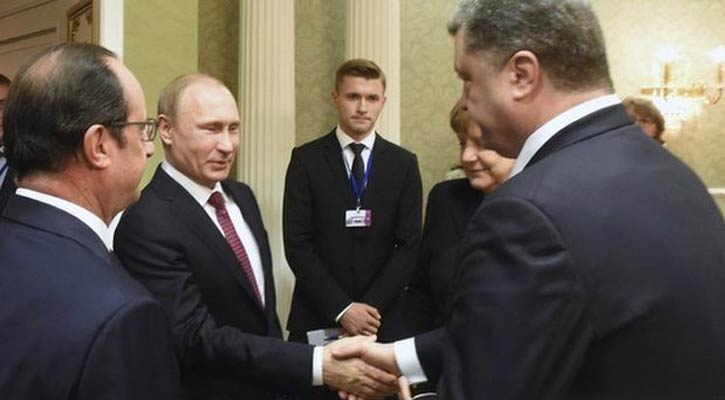 ইউক্রেনের প্রেসিডেন্ট পেত্রো পোরোশেঙ্কোর সঙ্গে ম্যারাথন বৈঠক শেষে রাশিয়ার প্রেসিডেন্ট ভ্লাদিমির পুতিন বলেন, আমরা প্রধান বিষয়ে একমত হতে পেরেছি। এসময় জার্মানি ও ফ্রান্সের নেতাদের সঙ্গেও বৈঠক করেন পুতিন।