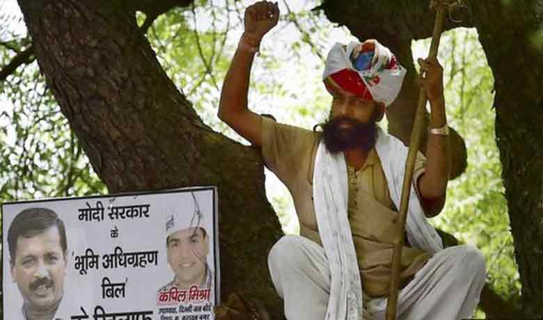ক্ষমতাসীন বিজেপি সরকারের ভূমি অধিগ্রহণ বিলের বিরোধিতা ও এর প্রত্যাহার চেয়ে বুধবার দিল্লিতে র্যালি বের করে এএপি। র্যালিতে যোগ দিতে রাজস্থান থেকে আসেন আত্মহননকারী গজেন্দ্র সিং নামে এই কৃষক।