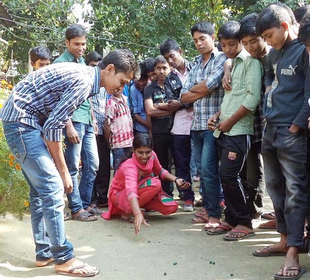 রামানন্দের আঁক গ্রামের জয়ন্ত বাগচীর ছেলে ৬ষ্ঠ শ্রেণীর ছাত্র দিগন্ত a4e92f3b-জানায়, সারাবছর টাকা জমিয়েছি মার্বেল খেলার জন্য।