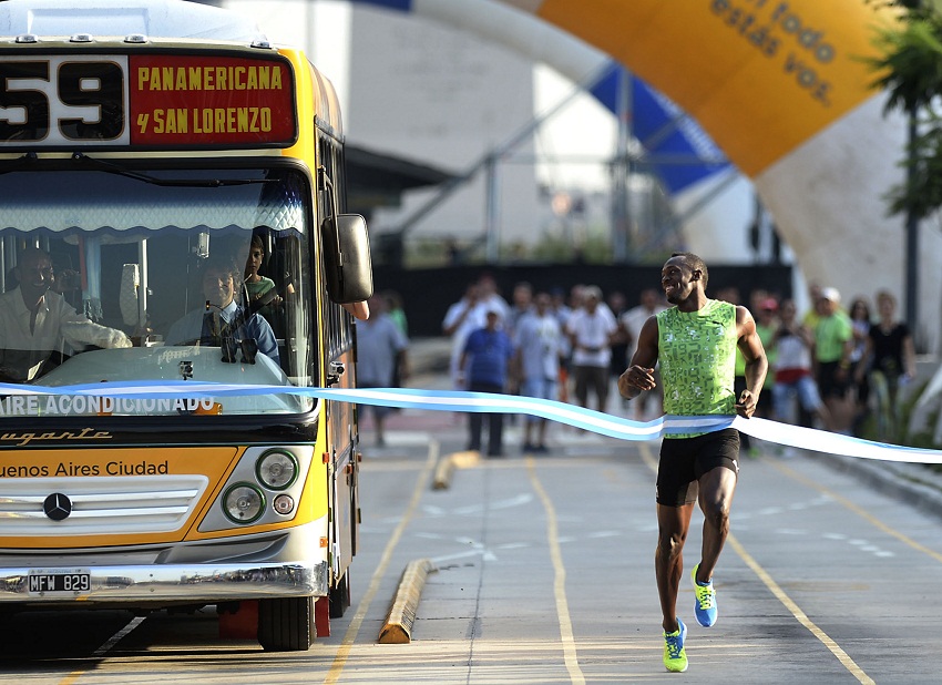 স্বাভাবিকভাবে ইঞ্জিনের গতির সাথে পেরেও ওঠা মানুষের পক্ষে অসম্ভব। সেই অসম্ভবকেই সম্ভব করে দেখিয়েছে গতির দানব ‘উসাইন বোল্ট’। আর্জেন্টিনার বুয়েনস আয়ারসে শিশুদের জন্য কোচিং ক্লিনিক উদ্বোধনের জন্য যান উসাইন বোল্ট। সেখানকার একটি রাষ্ট্রীয় টেলিভিশনের অনুরোধে যাত্রীবাহী বাসের বিপক্ষে রেসে নামেন বোল্ট। ৮০ মিটারের এই রেসটিতে অনায়েসেই বাসটির আগে ফিনিশিং লাইন পার করনে উসাইন বোল্ট।