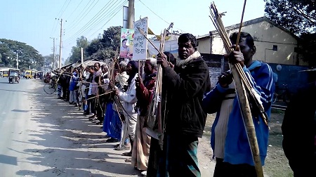 গাইবান্ধায় আদিবাসীদের মানববন্ধন