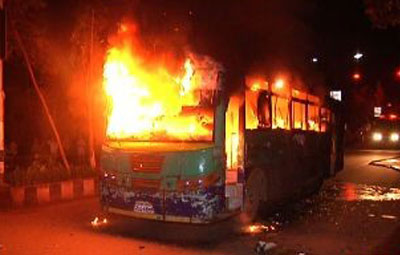 দমকল বাহিনীর নিয়ন্ত্রণ কক্ষের কর্তব্যরত কর্মকর্তা নিলুফার ইয়াসমীন জানান, সোমবার রাত সাড়ে ৭ টার দিকে বাসটিতে আগুন দেয় দুর্বৃত্তরা। খবর পেয়ে দমকল বাহিনী ২ টি ইউনিট ঘটনাস্থলে গিয়ে আগুন নিয়ন্ত্রণে আনে।