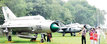 যেখানে সবুজ ঘাসে আচ্ছাদিত বিশাল উন্মুক্ত প্রান্তর। দুই দিকেই বড় প্রাচীর। মাঝখানে মাঠের ওপর সাজানো আছে নানা আকৃতির বিমান, হেলিকপ্টার, রাডারসহ নানা সরঞ্জাম। কোনোটা বিশাল আকৃতির যুদ্ধবিমান, কোনোটা আবার যাত্রী পরিবহনের হেলিকপ্টার। দু-চারটি নয়, ২১টি যুদ্ধবিমান! মিগ-২১ যুদ্ধবিমানের পাশে কৌতূহল নিয়ে দেখছিল ছয় বছরের শিশু সাদমান সাকিব। রাজধানীর মিরপুরের পল্লবী থেকে মায়ের সঙ্গে বিমান জাদুঘর দেখতে এসেছে ও। বিমানে চড়ার জন্য কান্না জুড়ে দিল ও। পরে কর্তৃপক্ষের অনুমতিতে বিমানের সিঁড়িতে বসে আনন্দে আত্মহারা হয়ে গেল সাকিব।