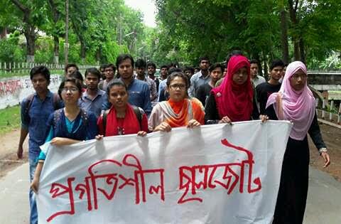 গতকাল বৃহস্পতিবার সমাজতান্ত্রিক ছাত্র ফ্রন্টের আহ্বায়ক ফজলে রাব্বীর নেতৃত্বে মিছিলটি বিশ্ববিদ্যালয়ের চাকসু ভবনের সামনে থেকে শুরু হয়ে বিবিএ অনুষদ,শহীদ মিনার ও প্রশাসনিক ভবন প্রদক্ষিণ করে কলা ও মানববিদ্যা অনুষদের সামনে শেষ হয়।