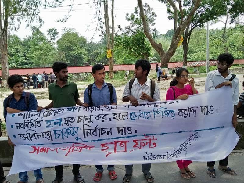 চট্টগ্রাম বিশ্ববিদ্যালয়ে (চবি) ৫ দফা দাবিতে মানববন্ধন করেছে সমাজতান্ত্রিক ছাত্র ফ্রন্ট বিশ্ববিদ্যালয় শাখা।