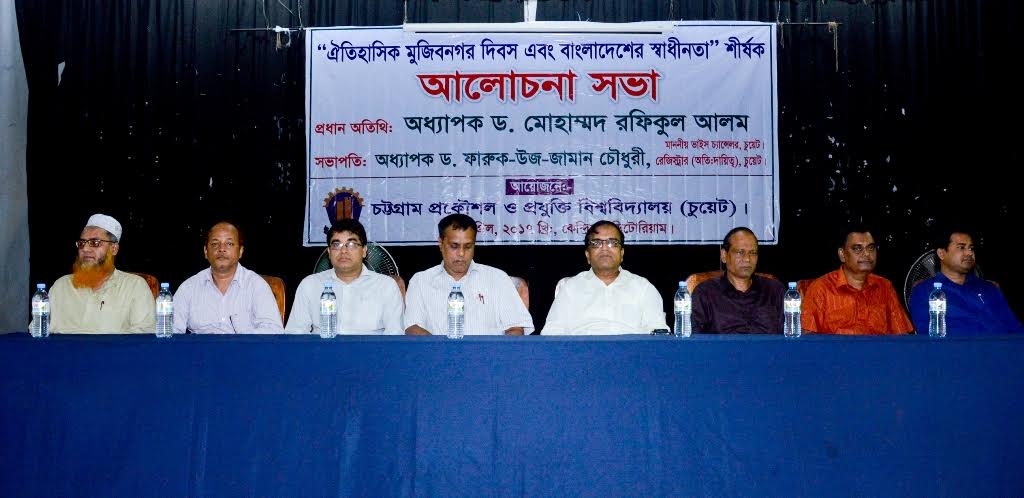 চট্টগ্রাম প্রকৌশল ও প্রযুক্তি বিশ্ববিদ্যালয়ে (চুয়েট) মুজিবনগর দিবস উপলক্ষে “ঐতিহাসিক মুজিবনগর দিবস এবং বাংলাদেশের স্বাধীনতা” শীর্ষক আলোচনা সভা অনুষ্ঠিত হয়েছে।