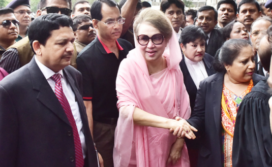 আজ সোমবার সকাল সোয়া ১০টার দিকে খালেদা জিয়া তাঁর গুলশানের বাসভবন থেকে বের হন। ১১টা ৩৫ মিনিটে পুরান ঢাকার বকশীবাজারের বিশেষ আদালতে পৌঁছান তিনি।