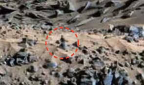 ইউ.এফ.ও বিশেষজ্ঞদের দাবি, এই ছবিটিতে দেখা যায় একটি জীবন্ত এলিয়েন মানুষের মতো রেড প্ল্যানেট পয়েন্টিং পৃষ্ঠের উপর দাঁড়িয়ে আছে। ইউফোসাইটিংসডেইলি ডট কম এই ওয়েবসাইটে একটি ব্লগ পোস্ট করে সম্পাদক স্কট সি ওয়ারিং বলেন, একটা পাহাড়ের উপর দাড়িয়ে জীবন্ত এলিয়েনটি নাসার কিউরিওসিটি রোভার ড্রয়েড এর দিকে তাকিয়ে আছে। ছবিটিতে এলিয়েনটির মাথা, বুক ও হাত দেখা যায় এবং তার পায়ের আকৃতি ত্রিভুজের মতো।