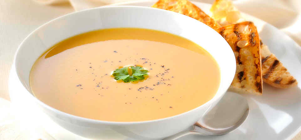 একটি স্ম্যুথ,স্পাইসি থাই স্যুপ ।