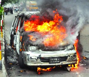 ধানমন্ডিতে মাইক্রোবাসে আগুন