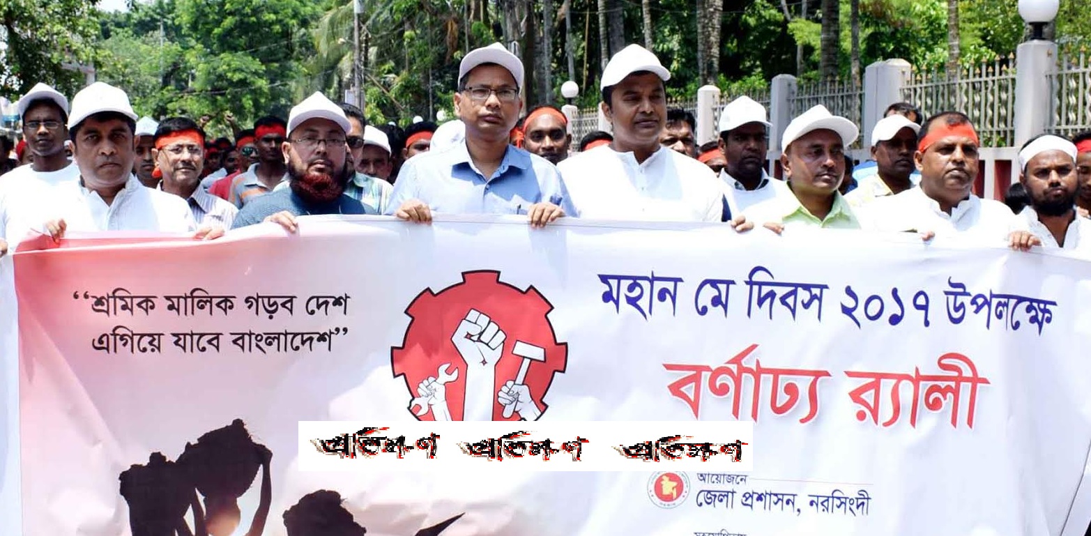 আজ সোমবার সকালে নরসিংদী জেলা প্রশাসক ড. সুভাষ চন্দ্র বিশ্বাস এর নেতৃত্বে শ্রমিকদের নিয়ে এক র্যালি জেলা প্রশাসক কার্যালয় থেকে বের হয়ে জেলা শিল্পকলা একাডেমিতে শেষ হয়।