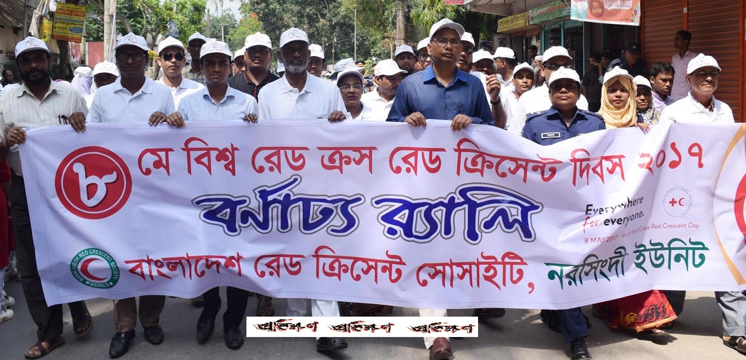 বিশ্ব রেড ক্রস ও রেড ক্রিসেন্ট দিবস উপলক্ষ্যে বাংলাদেশ রেড ক্রিসেন্ট সোসাইটি নরসিংদী ইউনিটের উদ্যোগে র‌্যালী ও আলোচনা সভা অনুষ্ঠিত হয়েছে।