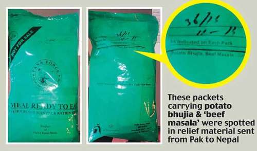 কাঠমান্ডু বীর হাসপাতালের ভারতীয় চিকিৎসকরা বুধবার ডেইলি মেইলকে জানান, নেপালের দুর্গত লোকদের ত্রাণসামগ্রীর অংশ হিসেবে মঙ্গলবার পাকিস্তান ‘বিফ মশলা’ পাঠিয়েছে।