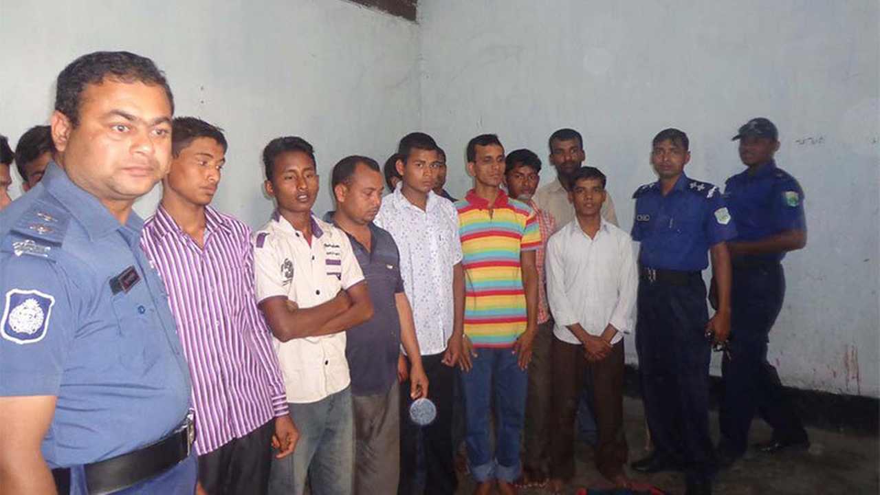 আটককৃতরা হলেন- বাড়ির মালিক জামায়াত নেতা আয়নাল হক প্রধান (৩২), পাটগ্রাম ইউনিয়নের রহমতপুর এলাকার রফিকুল ইসলামের ছেলে মাসুদ রানা (১৯), একই এলাকার মোশারফের ছেলে ফরহাদ হোসেন (১৭), নজরুল ইসলামের ছেলে সাফিউল হোসেন (১৭), আজিজুল ইসলামের ছেলে জিয়াউর রহমান জিবু (২৫), শমসের আলীর ছেলে রোকনুজ্জামান (২৫), একই ইউনিয়নের প্রাণকৃষ্ণ এলাকার সোলায়মান আলীর ছেলে মোহাম্মদ হাসান (২২), জগতবেড় ইউনিয়নের পশ্চিমজগতবেড় এলাকার মাহবুবের ছেলে নুর আলম(১৬), আমিনুর হকের ছেলে আলতাফ হোসেন (২২), একই ইউনিয়নের কচুয়ারপাড় এলাকার বদিয়ার রহমানের ছেলে নুর হুদা (১৯), হাতীবান্ধা উপজেলার ফকিরপাড়া ইউনিয়নের দালালপাড়া এলাকার আবু বক্করের ছেলে আব্দুর রহিম (২০), একই উপজেলার বড়খাতা ইউনিয়নের বড়খাতা এলাকার আহম্মেদ হোসেন আলীর ছেলে শমসের আলী (৩৫), গাইবান্ধা জেলার পলাশবাড়ী উপজেলার নান্দিশহর এলাকার সহিদুল ইসলামের ছেলে মোহাম্মদ রতন মিয়া (২২)।