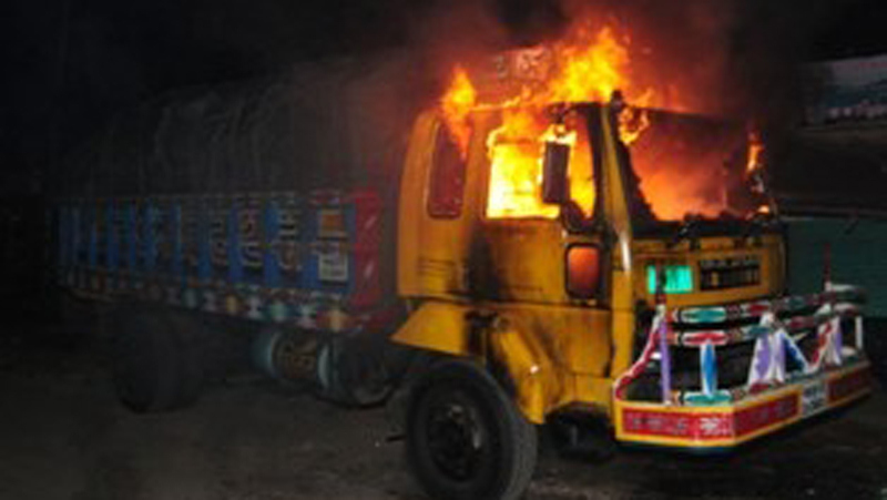 পাটগ্রাম থানা পুলিশ, ফায়ার সার্ভিসের কর্মী সূত্র জানায়, বুধবার রাত ১২টা ৪৫ মিনিটে উপজেলার জুম্মারপাড় নামকস্থানে গাছ, বাঁশ ও কলারগাছ ফেলে মহাসড়কে বেড়িকেট তৈরি করে দুর্বৃত্তরা। এসময় ট্রাকটি (রংপুর-ঢ-১১-০২০২)  থামিয়ে পেট্রোলবোমা হামলা চালিয়ে অগ্নিসংযোগ করে পালিয়ে যায় তারা।