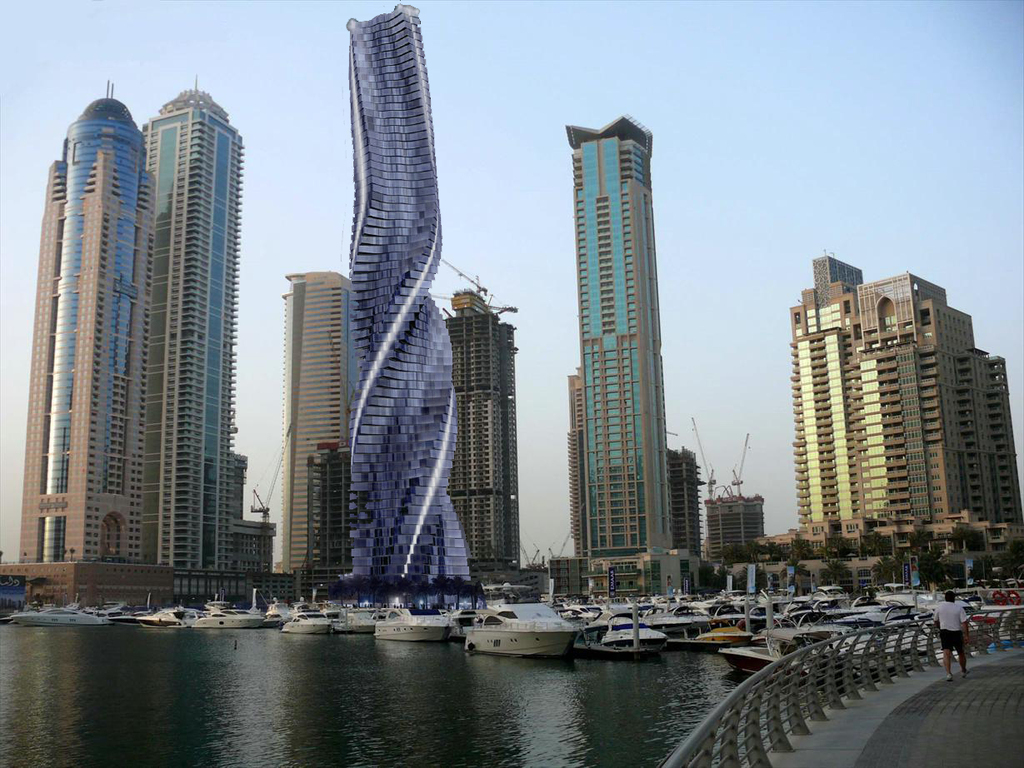 বিশ্বের প্রথম ঘূর্ণায়মান ভবন নির্মাণ করা হচ্ছে দুবাইয়ে। ভবনটির নাম দেয়া হয়েছে ‘দ্য ডায়নামিক টাওয়ার হোটেল’। ৮০ তলা এই ভবনটি মাটি থেকে উঠে যাবে ১৩৭৫ ফুট উঁচুতে। কংক্রিটের ভিত্তির ওপর নির্ভর করে পুরো ভবনটিই ঘুরতে সক্ষম।