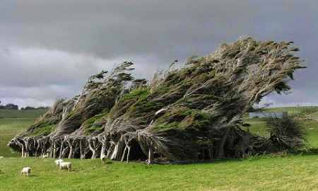 নিউজিল্যান্ডের একটি জায়গাতে বাতাসের গতি অনেক বেশি। এত বেশি যে সেখানে দাঁড়িয়ে থাকাই অসম্ভব হয়ে পড়ে। তবে গাছগুলোর তাতে কোন ভ্রুক্ষেপ নেই।