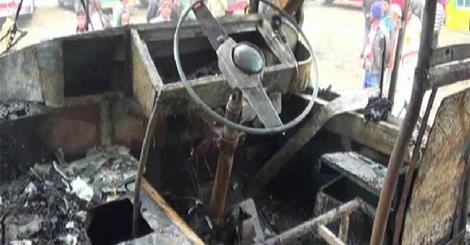 বোমায় পুড়লো ২ বাস, গুলিবিদ্ধ ১