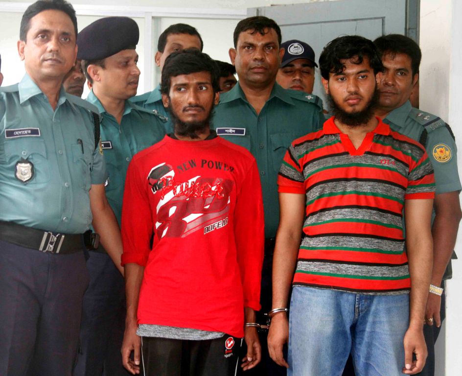 আসামিরা হলো, ঘটনাস্থল থেকেই গ্রেপ্তার হওয়া জিকরুল্লাহ ও আরিফুল এবং আবু তাহের ও মাসুম নামে আরও দুই জন। ওসি সালাহউদ্দিন জানান, গ্রেপ্তার দুই জনের প্রাথমিক স্বীকারোক্তি অনুযায়ী আবু তাহের ও মাসুমের নাম দেওয়া হয়েছে।