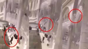 ঘটনার ভিডিও ইতোমধ্যে সামাজিক যোগাযোগমাধ্যমে ছড়িয়ে পড়েছে। ফুটেজে দেখা যায়, ওপর থেকে পড়া ব্যক্তিটি নিরাপত্তা কর্মকর্তার গায়ের ওপর এসে পড়েন এবং দুজনই মাটিতে লুটিয়ে পড়েন।