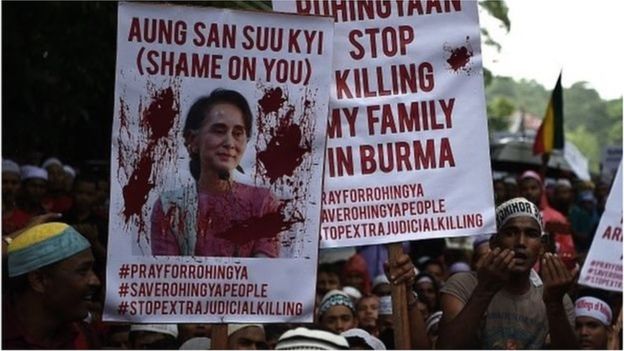 হত্যা, ধর্ষণ, অগ্নিসংযোগে বহু রোহিঙ্গা মুসলিমের হতাহতের ঘটনায় মিয়ানমারের নেত্রী অং সান সু চীর ভূমিকাও আন্তর্জাতিক মহলে সমালোচিত হয়। বুধবার অং সান সু চীর কার্যালয় থেকে দেয়া এক বিবৃতিতে জানানো হয় সেনা অভিযানের সমাপ্তি ঘটেছে এবং এলাকাটি এখন পুলিশের নিয়ন্ত্রণে রয়েছে। বিবৃতিতে দেশটির জাতীয় নিরাপত্তা উপদেষ্টাকে উদ্ধৃত করে বলা হয়েছে, “উত্তর রাখাইনের পরিস্থিতি এখন স্থিতিশীল”।